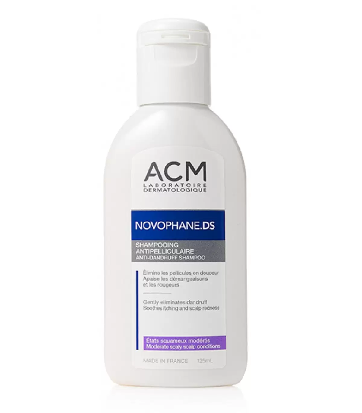 Le Shampooing Pellicules modérées Novophane DS permet un nettoyage des cheveux en douceur et sans agression, mais aussi d’assainir le cuir chevelu sans le dessécher et de faire disparaître les démangeaisons et les irritations. Sa formulation repose sur l’expertise dermatologique d’ACM, qui a mis au point une composition regroupant plusieurs actifs aux propriétés complémentaires pour une action des plus efficaces et une chevelure à nouveau belle et éclatante de santé, et parmi lesquels figurent :