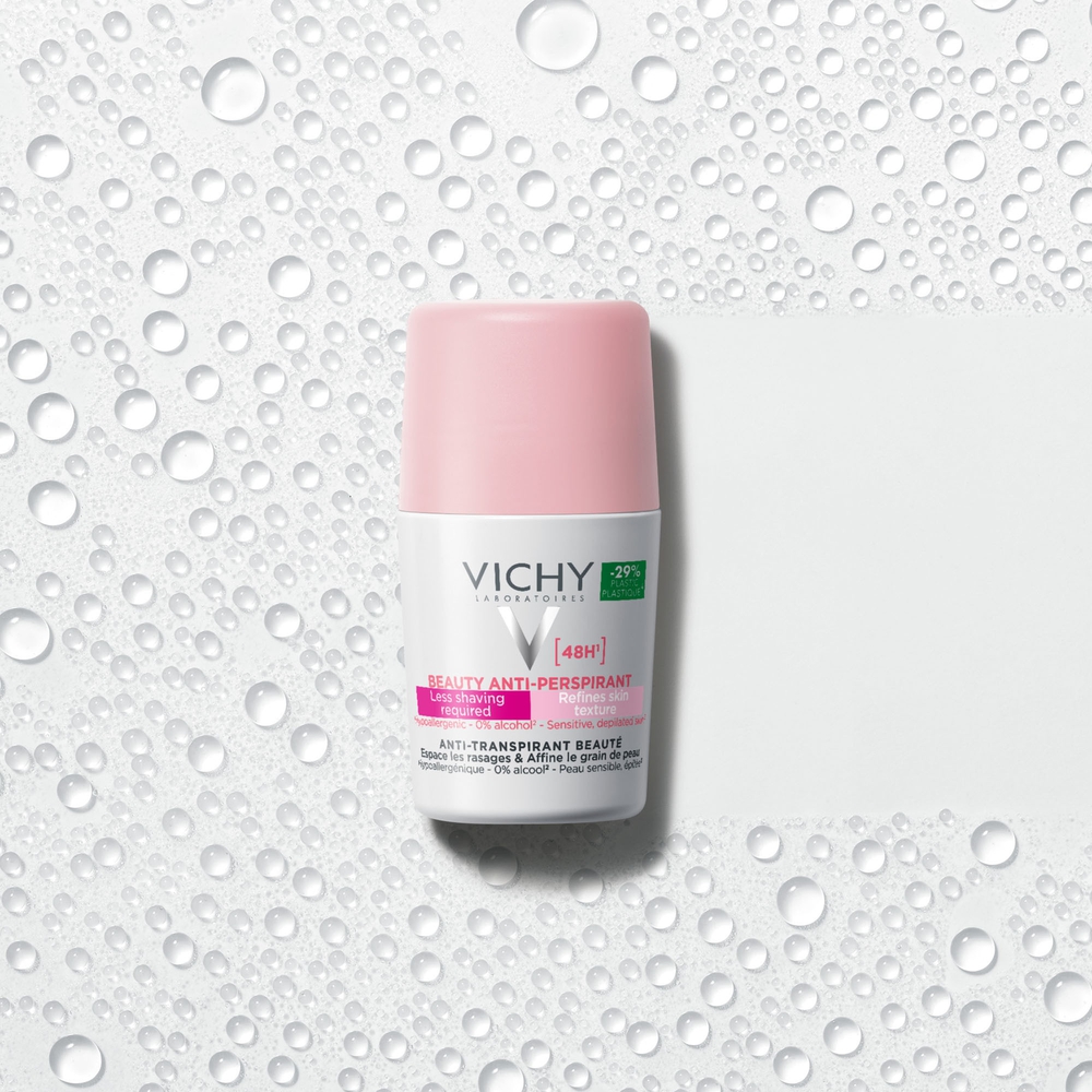 VICHY DÉODORANT ANTI-TRANSPIRANT 48H est bien plus qu’un simple déodorant : c’est un véritable soin pour les aisselles sensibles, souvent malmenées par le rasage et l’épilation. Conçu pour offrir une efficacité anti-transpirante pendant 48 heures, ce roll-on associe protection, douceur et action esthétique, pour des aisselles nettes, fraîches et visiblement plus belles au quotidien.