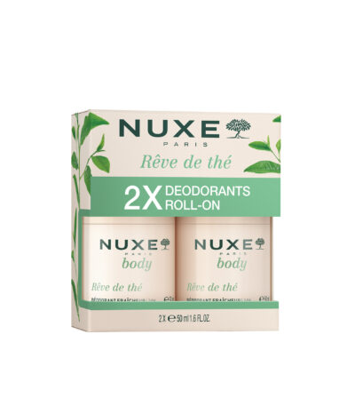 Découvrez la fraîcheur et la protection longue durée avec l’OFFRE SPÉCIALE NUXE RÊVE DE THÉ : 2 Déodorants Roll-On 50ml ! Dites adieu aux soucis de transpiration et aux mauvaises odeurs. Imaginez une texture fluide et légère qui pénètre instantanément, vous enveloppant d’un parfum ressourçant de thé vert, sans laisser la moindre trace sur vos vêtements.